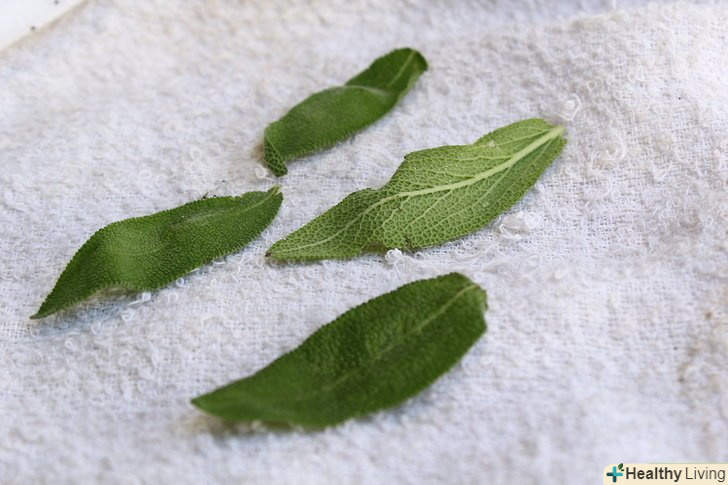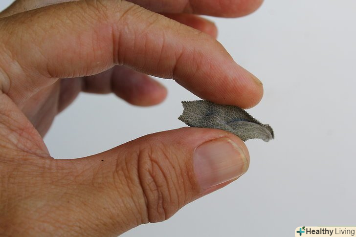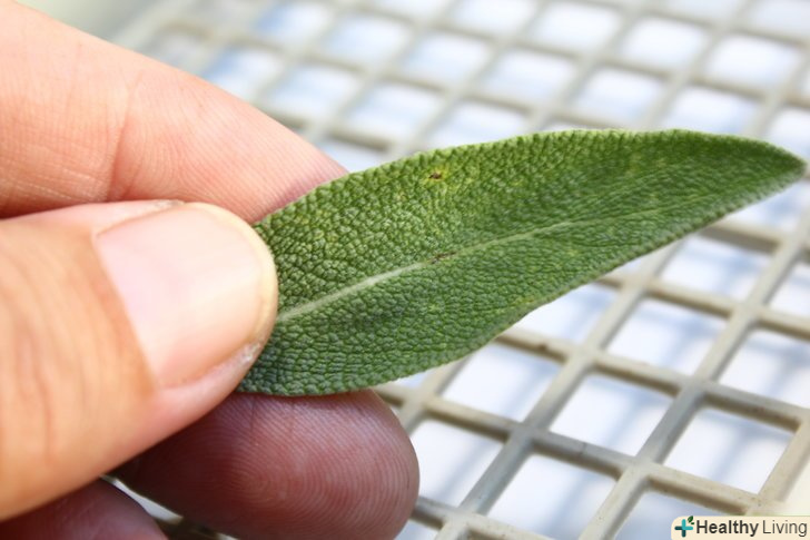 Перевірте листя на наявність комах.трав'янисті рослини, включаючи шавлія, є одним з улюблених місць комах. Уважно огляньте кожен лист. На них можуть бути повзають жучки, залишки павутини і крихітні личинки.[4]- Листя можна очистити від слідів комах і потім використовувати, але краще від них позбутися і використовувати чисті, здорові листя.