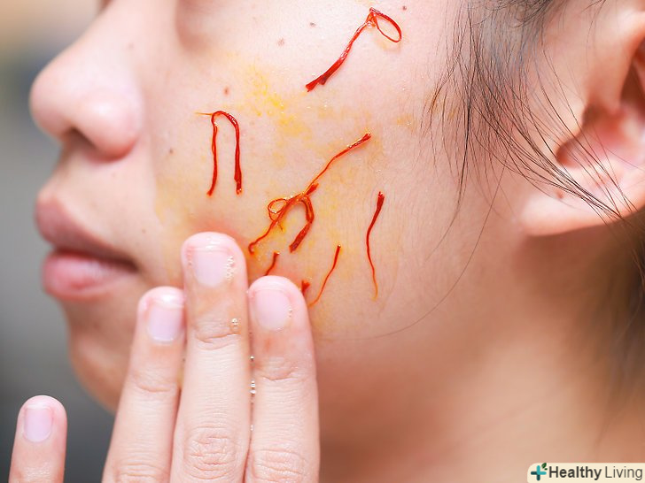 Шафран для сяйва шкіри.шафран підходить також і для зовнішнього застосування – вважається, що він робить шкіру більш світлою і чистою. Самі косметичні процедури дуже різноманітні і часто залежать від цілей використання.- Робіть маску з шафранового молока, щоб зволожити шкіру і зробити її більш ніжною. Замочіть щіпку шафранових ниток приблизно в 4 столових ложках (60 мл) холодного молока. Залиште на кілька хвилин, а потім нанесіть суміш на чисту шкіру обличчя. Коли маска висохне, змийте її теплою водою.