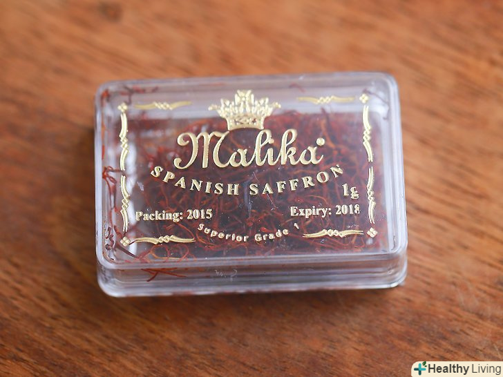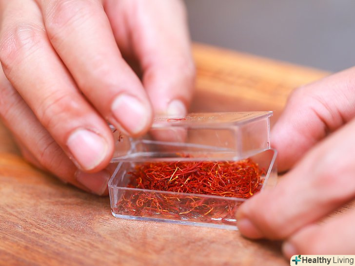 Зберігайте шафран правильно.шафран не псується, але він поступово втрачає свій аромат. Правильне зберігання дозволяє зберегти аромат шафрану довше.- Загорніть нитки шафрану в фольгу і приберіть в герметичний контейнер. Зберігайте в прохолодному темному місці до 6 місяців. Якщо ви хочете зберігати шафран довше, то приберіть контейнер в холодильник – так шафран можна зберігати до двох років.[1]