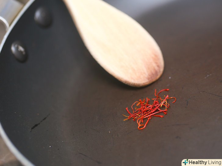 Підігрійте нитки шафрану.підігрівання або "підсмажування" шафрану-це інший поширений спосіб витягти з спеції максимальний аромат. Особливо часто це застосовується в рецептах паельї.- Поставте чавунну сковорідку на плиту на середній вогонь.