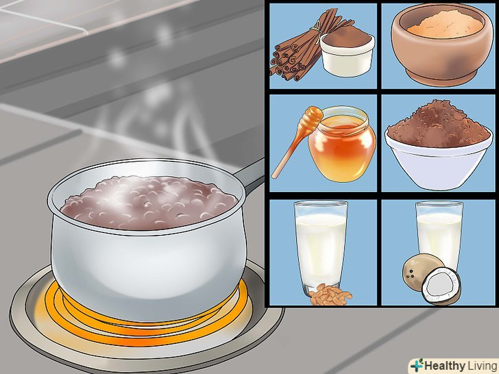 Спробуйте гарячий шоколад з куркумою.куркуму також можна додати в гарячий шоколад і отримати теплий і гострий напій.[15]- Візьміть невелику каструлю і вилийте в неї 250 мл кокосового або мигдального молока, додайте 5 грам несолодкого какао-порошку, 18 грам рідкого меду, 2 грами подрібненої куркуми (або 5 грам тертого свіжого кореня куркуми) і 2 грами кориці. Доведіть суміш до кипіння, збиваючи суміш, поки спеції і какао гарненько не перемішаються.