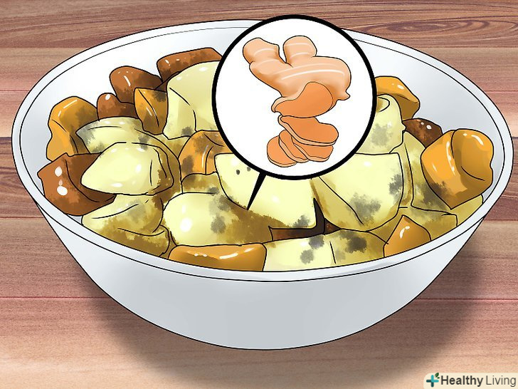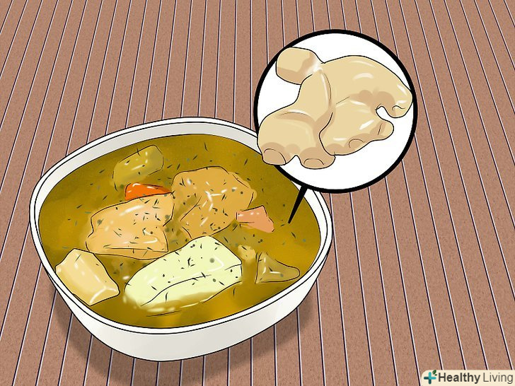 Додавайте куркуму в рагу, каррі і супи.Овочечисткою очистіть шкірку від кореня, після чого подрібніть його як корінь імбиру або часник. Обсмажте корінь куркуми разом з цибулею, морквою і селерою. Додайте корисні жири, на зразок кокосового молока, а також різні овочі, щоб приготувати рагу і каррі.[12]- Корінь куркуми можна додавати в супи свіжим або у вигляді порошку, щоб він став основою для спецій. Додайте щіпку куркуми в курячі супи з локшиною або в супи на основі кокосового молока.