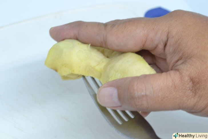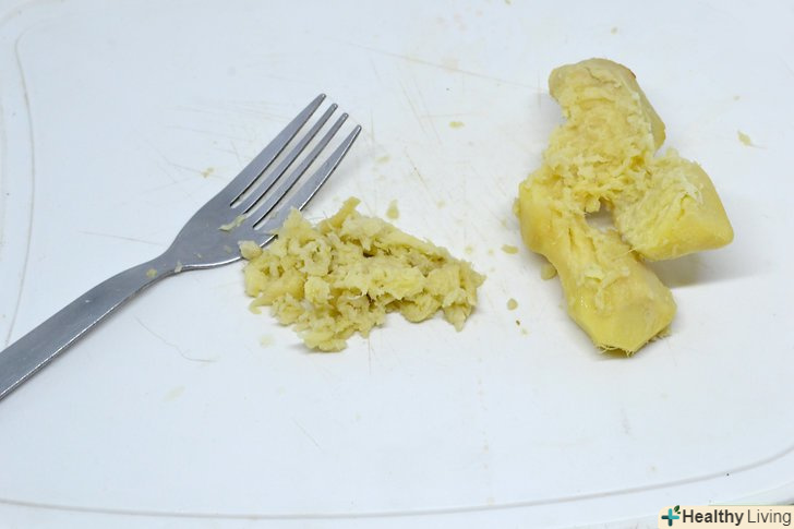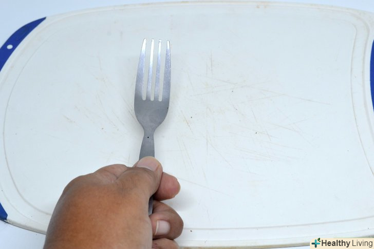 Покладіть вилку на обробну дошку.покладіть металеву вилку на обробну дошку зубами верх.[15] візьміться за ручку вилки неведущей рукою і не давайте їй рухатися.- Візьміть вилку з більш дрібними зубами, якщо хочете натерти імбир ще дрібніше.