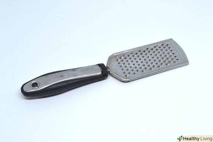 Знайдіть широку тертку з дрібними отворами.неважливо, буде це дво-або чотиристороння терка, головне, щоб у неї не було металевих зубців, оскільки такі терки не дуже ефективні і вимагають більше часу і зусиль.[10] таку тертку можна купити в багатьох супермаркетах або в магазині кухонного приладдя.