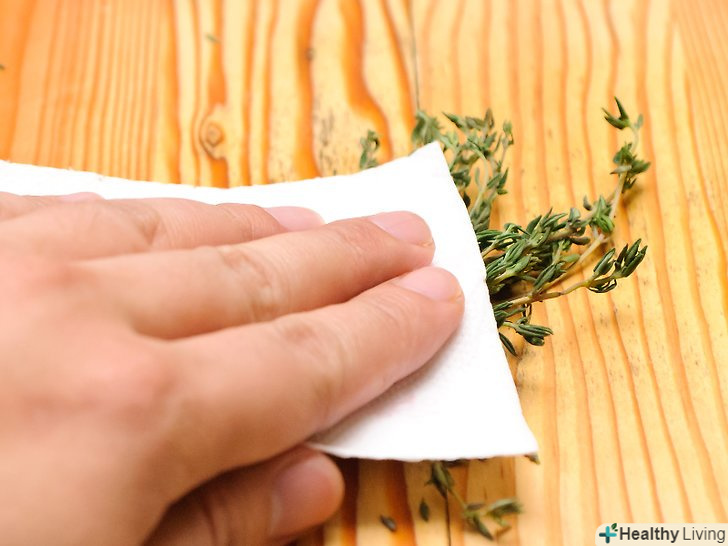 Промакніте гілочки чебрецю паперовим рушником, щоб його висушити.Будьте обережні, ніжні листочки можна легко пошкодити, і вони втратять ефірні масла.