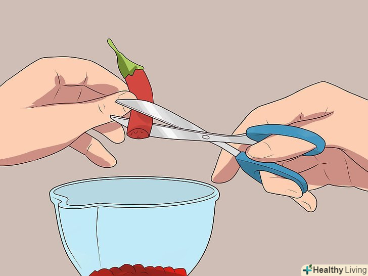 Використовуйте кавомолку.покришите перці ножицями в кавомолку і змеліть. Можете порубати їх, але так буде більше безладу. Чим менше безладу, тим менше шансів, що перець потрапить кому-небудь в очі.