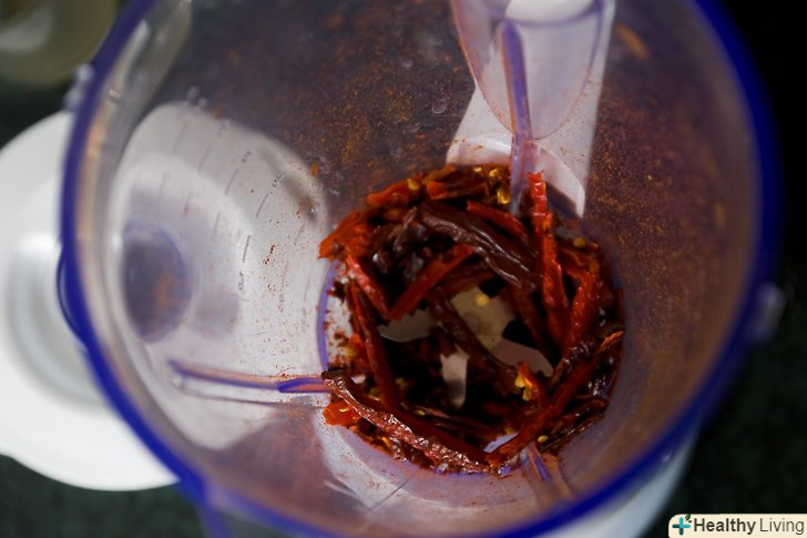 Подрібніть перець.на наступний день покладіть сушені перці в кухонний комбайн або подрібніть їх вручну. Подрібнюйте перці вручну, попередньо надівши рукавички і поклавши перці в пластиковий пакет. Або застосуйте кухонний комбайн.