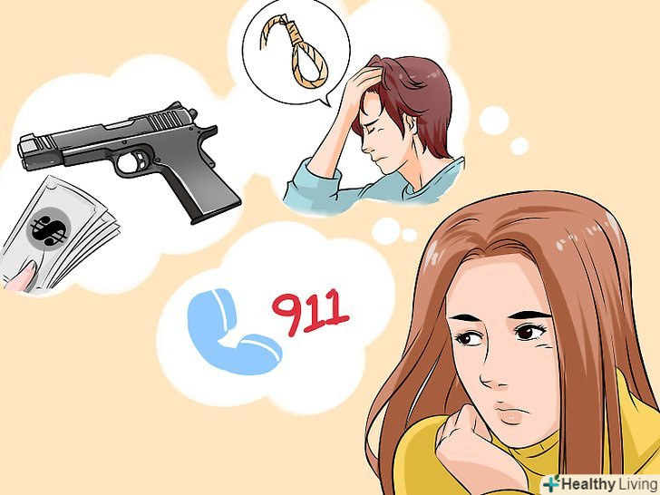 Знайте, коли слід звернутися за професійною допомогою.якщо ваша смуток триває більше місяця, можливо, у вас депресія і вам потрібна професійна підтримка або консультація. Симптоми депресії набагато серйозніші, ніж смуток, і включають в себе повну втрату інтересу до занять, які раніше вас радували, дратівливість, проблеми з концентрацій, занепокоєння, ослаблення статевого потягу, зміни в режимі сну і постійне відчуття втоми.[26] якщо ви розпізнали серйозні ознаки наявності суїцидальних думок, негайно зверніться за допомогою. Ідіть у відділення швидкої допомоги або зателефонуйте в швидку допомогу або на "телефон довіри" екстреної психологічної допомоги (495) 575-87-70 (Росія).[27] ознаки суїциду включають:[28]- Загрози або розмови про самогубство, включаючи пошук плану самогубства в Інтернеті