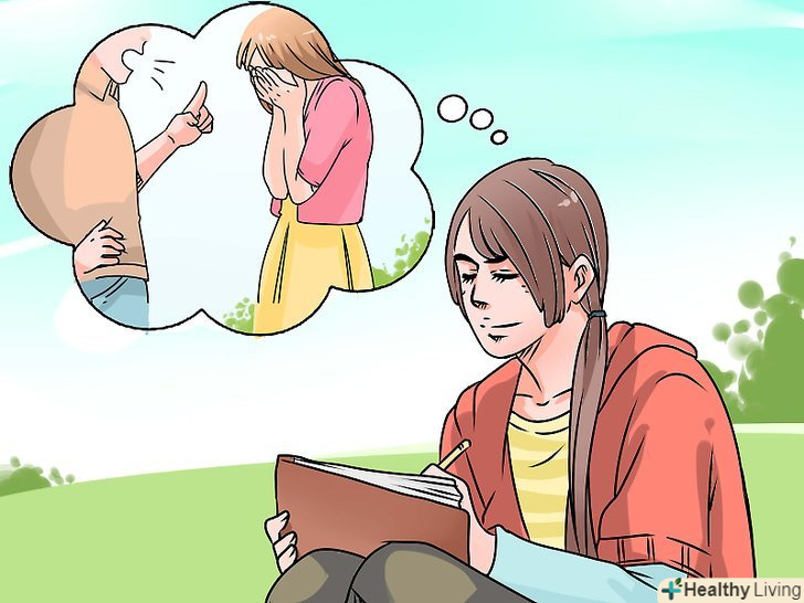 Запишіть свої почуття в щоденник.підіть в тихе місце, де ви зможете посидіти наодинці зі своїми думками. Опишіть якомога більш детально свої почуття, те, що відбувалося, і наскільки ви засмучені. Обов'язково зупиніться на тому, як ви відчуваєте себе у фізичному плані. Це допоможе вам зрозуміти першопричини вашої смутку. Може, вам захочеться написати лист свого болю, якщо вам складно просто писати про свої почуття.[3]- Якщо ви випустили свої почуття і все ще відчуваєте смуток, на це є своя причина. Можливо, вам все ще потрібно проаналізувати проблемну ситуацію або внутрішній конфлікт. Записи в щоденнику допоможуть вам прояснити свої думки і почуття.[4]