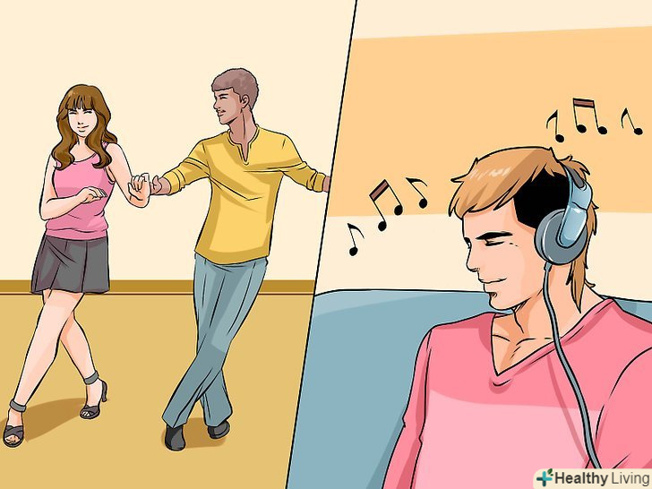 Потанцюйте або послухайте сумну музику.недавні дослідження дають підстави припустити, що танці допомагають боротися з такими симптомами душевного здоров'я, як смуток, втома, тривожність, і їх фізичними симптомами. Можна танцювати в студії або просто порухатися в такт музиці вдома.[5] ще дослідження показують, що прослуховування сумної музики може допомогти, коли ви сумуєте.[6][7] Сумна музика створює зв'язок з почуттями, що дозволяє вам їх пережити.- Якщо ви не готові працювати над своїми почуттями, музика може відвернути вас, поки ви не наберетеся сил протистояти смутку.