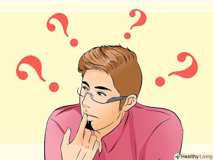 Визначте причини своїх негативних думок.Подумайте про проблеми, які лежать в основі ваших негативних думок. Наприклад, якщо ви думаєте, що завжди будете самотні, ваші першопричини можуть бути пов'язані з нестачею впевненості в собі при знайомстві з новими людьми. Хоча не завжди зручно зізнаватися собі у власних почуттях, важливо зрозуміти, що викликає ваші негативні думки.[12]- Можна спробувати зробити запис думок, описуючи подію, яка сталася не так, як вам хотілося б, або з яким ви б хотіли впоратися інакше. Відстежуйте будь-яке почуття смутку або події, йому супутні.[13]