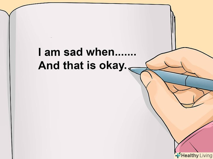 Поважайте свої почуття.ви можете відчувати смуток, тому не намагайтеся стримувати свої емоції. Прийняти свої емоції-це перший крок до того, щоб відпустити смуток. У вас є причина, чому ви сумуєте, і важливо визнати цю смуток і біль. Таким чином ви почнете шлях позбавлення від печалі.[16] якщо вам важко поважати свої почуття, запишіть і скажіть вголос таке:- " Я сумую, коли............................ І це нормально.”