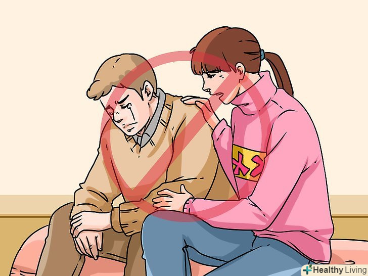 Не дозволяйте нікому применшувати ваші почуття.часто сім'я і друзі намагаються втішити вас і бажають Вам добра, кажучи, що туга пройде чи що в кожній ситуації є щось хороше. Навіть з кращими спонуканнями, вони як би применшують ваше обгрунтоване почуття смутку.[17][18] Скажіть їм, що Ви знаєте, що вони хочуть Вам добра, але що ви відчуваєте себе сумно і вам потрібен час, щоб посумувати.- Наприклад, якщо ви тільки що розлучилися зі своєю половинкою і ваш друг говорить вам, що тепер у вас з'явилася купа вільного часу, можете сказати, що вам потрібен час, щоб пережити свої емоції.
