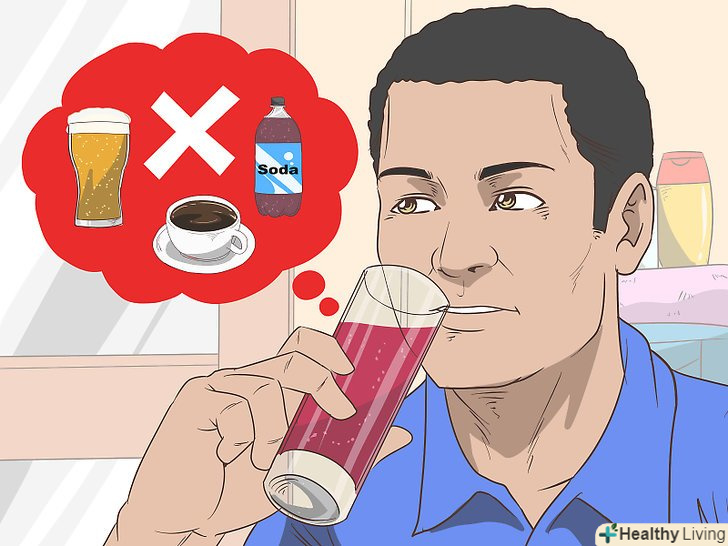Доповніть воду іншими корисними напоями.ви не зобов'язані пити одну лише воду. Рідини без штучних ароматизаторів або доданого цукру (на зразок зеленого чаю або журавлинного соку), поліпшать водний баланс в організмі і прискорять процес виведення нікотину з сечею.[5]- Якщо ви хочете вивести нікотин зі свого організму, не пийте спиртне, газовані напої і каву. Ці рідини не заповнять рівень рідини так само добре, як вода або соки, а лише занесуть в організм непотрібні хімікати.