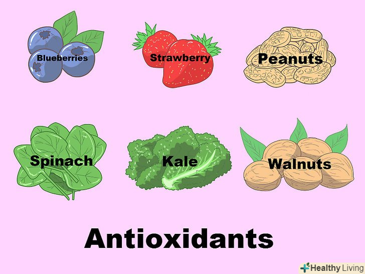 Споживайте продукти, багаті антиоксидантами.антиоксиданти допоможуть організму швидше засвоїти нікотин, тим самим прискорюючи його виведення з сечею або потом. Антиоксиданти також допоможуть вивести токсини (на зразок нікотину) з організму. Ось кілька продуктів з високим вмістом антиоксидантів: [6]- Листові овочі, на зразок кучерявої капусти або шпинату;