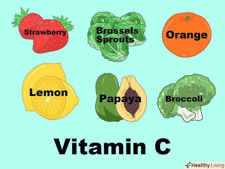 Наповніть свій раціон продуктами з вітаміном С. Вітамін С прискорює обмін речовин, що призводить до більш швидкого виведення нікотину з організму.[9] до продуктів з природно високим вмістом вітаміну С відносяться апельсини, полуниця, брюссельська капуста, брокколі, папайя і ківі.- Добавки з вітаміном С також продаються у вигляді таблеток. Загляньте у відділ "Харчові добавки" в місцевому продуктовому магазині або магазині натуральних продуктів.