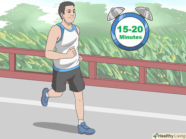 Рушайте на пробіжку. біг та інші кардіо-вправи прискорять ваше серцебиття і змусять вас попітніти. Разом з потом з організму вийде і нікотин.[10] бігайте досить довго, щоб гарненько пропотіти. Залежно від того, де ви живете, біг може зайняти різний час. Бігайте не менше 15-20 хвилин.- Якщо зовні холодно або ви не любите бігати на вулиці, сходіть в спортзал і побігайте на біговій доріжці.