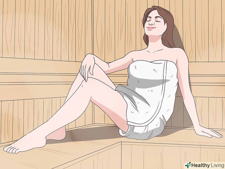 Сходіть в сауну.у сауні підтримується гаряча, насичена парою середовище, яка змусить вас попітніти. Це ідеальний спосіб вивести нікотин з організму. Чим більше ви потієте, тим більше нікотину вийде через шкіру. Посидьте в сауні 20-30 хвилин, а потім пориньте в басейн. Після цього поверніться в сауну ще на 20-30 хвилин.- Якщо у вас поруч немає саун, спробуйте знайти інше спекотне місце, де можна попітніти. Наприклад, проведіть кілька годин у місцевому басейні.
