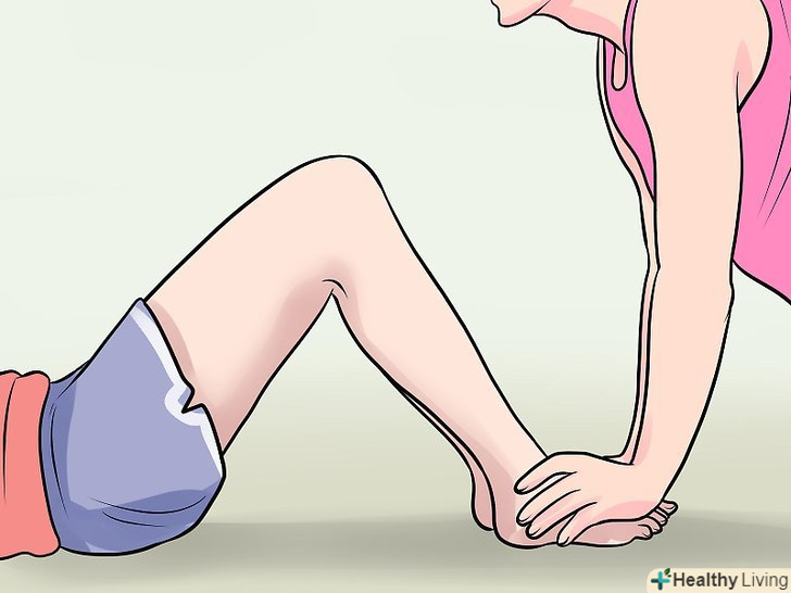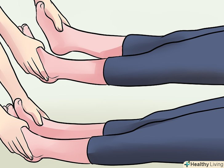 Попросіть друга, щоб він взявся за ваші щиколотки.При цьому великі пальці вашого помічника повинні знаходитися ближче до гомілки, іншими ж пальцями він повинен вхопитися за місця, розташовані над п'ятами.