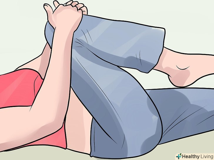 Ляжте на спину, витягніть ноги і покладіть руки вздовж тіла.протягом хвилини спробуйте злегка перекочуватися з одного стегна на інше. Це дозволить розслабити стегна, спину і ноги.