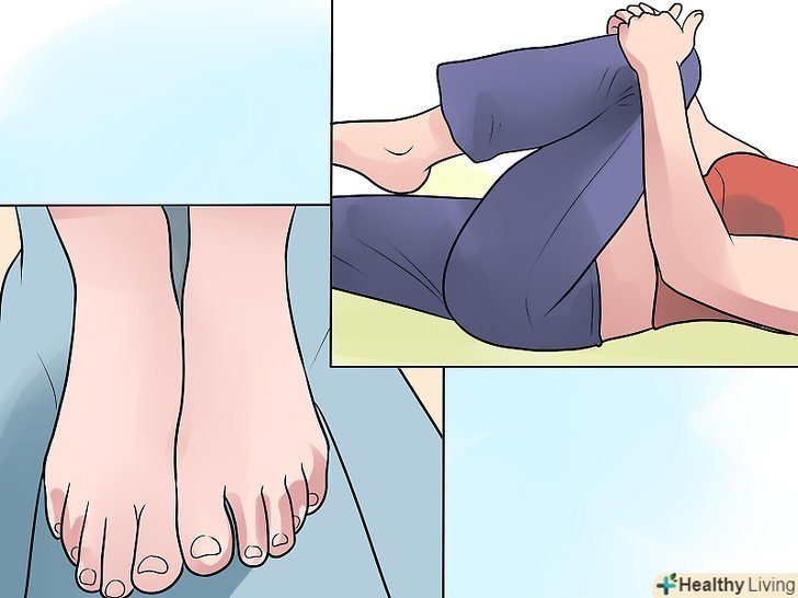 Якщо ви визначили, що одна нога коротша за іншу, спробуйте зробити наступні вправи.- Почніть з вправи для малого таза. Ляжте на спину, зігніть ноги в колінах. Підніміть ноги, ваші руки при цьому повинні триматися де-небудь між стегнами і литками. Направте коліна на себе і опустіть. Повторіть вправу 15 разів.[2]