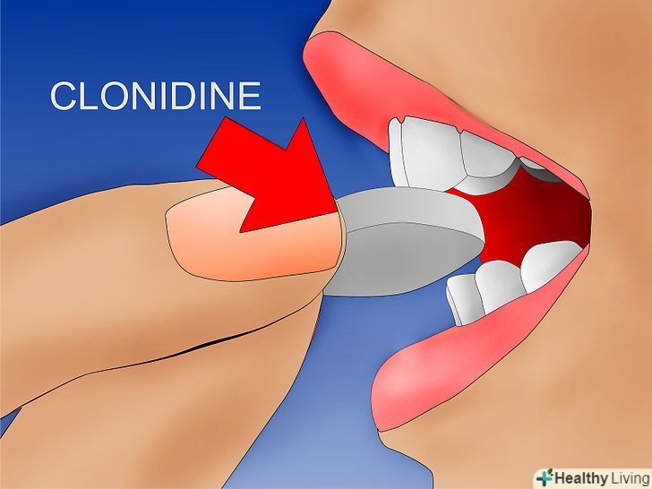 Розгляньте вживання клофеліну.Клофелін не викликає звикання, не є опіатом і використовується при високому кров'яному тиску (гіпертонії). Клофелін може бути дуже ефективним засобом при лікуванні залежності від метадону.[4]- Клофелін особливо корисний, якщо пацієнт відчуває тривогу і озноб. Лікарі зазвичай рекомендують приймати невеликі дози клофеліну на ніч, щоб пацієнт заснув.