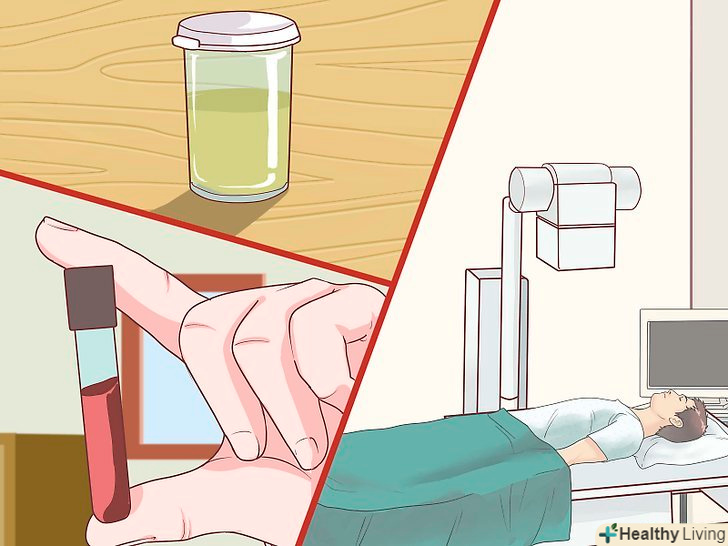 Знайте, коли слід вдатися до медичної допомоги.якщо ви відчуваєте будь-які симптоми ниркової інфекції, необхідно звернутися до лікаря. Для лікування деяких захворювань потрібна медична допомога, тому бажано якомога раніше поставити діагноз. Вам зроблять аналіз сечі і, можливо, проведуть ультразвукове дослідження, щоб виявити можливе пошкодження нирок.[14][15]- Лікар може призначити також аналіз крові на бактерії і перевірити, чи присутня кров у вашій сечі.