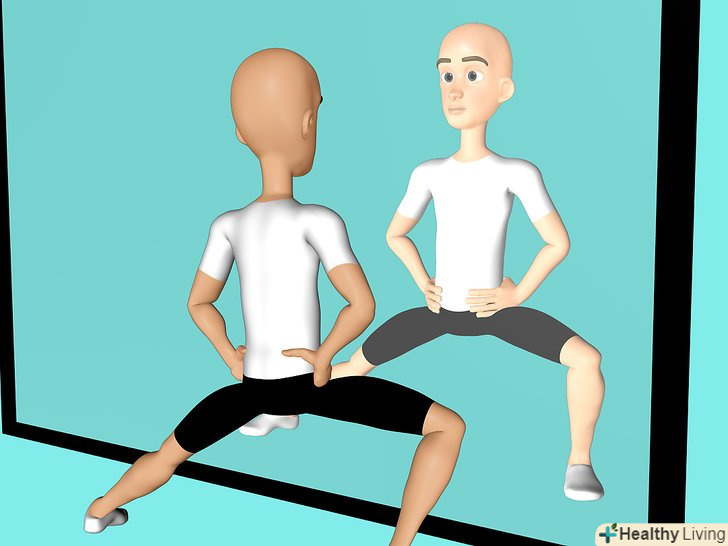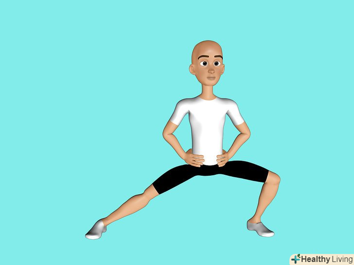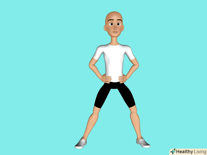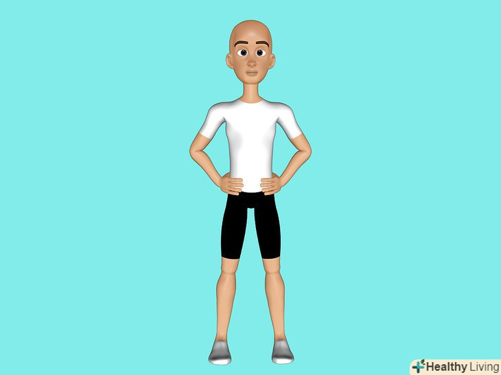 Тримайте спину рівно і втягніть живіт протягом усього вправи.Покладіть руки на стегна.