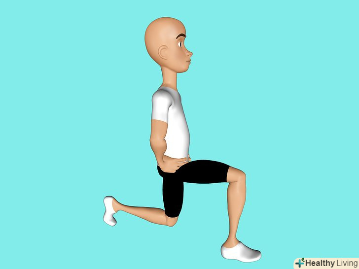 Повторіть все те ж саме з лівого боку.зробіть 10 випадів з кожного боку. Ви можете робити по 10 випадів на одну ногу, або міняти ноги.