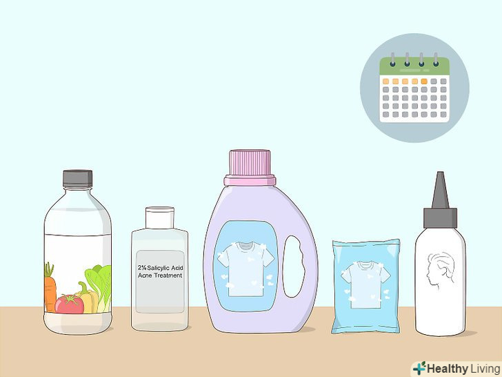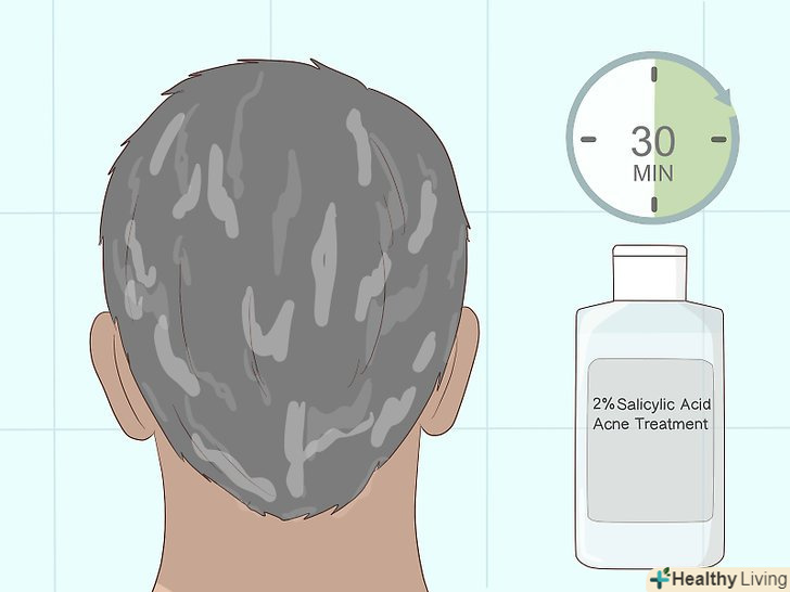 Потім нанесіть на волосся засіб проти акне з саліциловою кислотою. вам буде потрібно засіб з Двопроцентної концентрацією саліцилової кислоти. Наносите засіб повільно, щоб воно повністю просочило волосся. Залиште оцет і засіб від акне на волоссі на 30 хвилин.