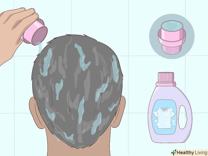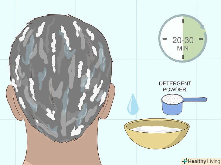 Змішайте ложку прального порошку з невеликою кількістю води і зробіть пасту. втирайте суміш в шкіру голови і волосся. Залиште все на волоссі на 20-30 хвилин.- По можливості намагайтеся розподілити основну масу суміші на потилиці. Найчастіше аналіз беруть з цього боку голови.