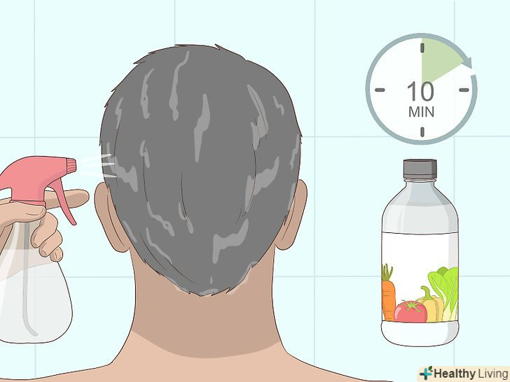 Залиште оцет на волоссі на 15-20 хвилин. не змивайте його. Це дасть оцту можливість вбратися в шкіру голови і волосся.