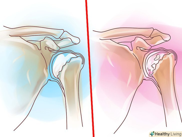 Перевірте, чи не пов'язана біль з рухом плеча. [15] якщо біль в руці виникає, коли ви рухаєте плечем, то причиною такого болю може бути плечовий артрит. Багато пацієнтів, які надходять у відділення невідкладної допомоги з побоюванням, що у них інфаркт, насправді страждають від цього захворювання. При цьому захворюванні руйнується гладка зовнішня оболонка кісток (хрящі). Коли хрящ стирається, зменшується захисний простір між кістками. Під час руху кістки починають тертися один об одного, викликаючи біль в плечі і/або в лівій руці.- Плечовий артрит неможливо вилікувати повністю. Існуючі методи лікування спрямовані на полегшення болю. Якщо у вас плечовий артрит, не переживайте, адже розвиток хвороби можна зупинити.