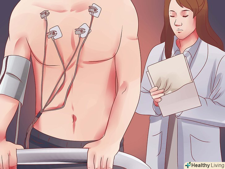 Пройдіть необхідні обстеження. [8] якщо у лікаря є підстави підозрювати інфаркт міокарда, то він призначить кілька обстежень для визначення вашого стану і постановки діагнозу. Вам буде необхідно зробити електрокардіограму (ЕКГ), щоб лікар міг оцінити серцевий ритм: в разі інфаркту на ЕКГ будуть видні патології. Ви також будете повинні зробити кілька аналізів крові, які, головним чином, необхідні для вимірювання рівня ферментів серця в крові, оскільки вони показують навантаження на серце.- Залежно від симптомів і результатів обстежень, лікар може рекомендувати додаткові діагностичні процедури, включаючи ехокардіограму, рентген грудної клітини, ангіограму та/або велоергометрію.