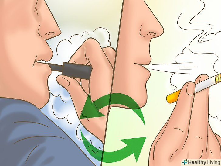 Придбайте набір для електронної сигарети.якщо ви ніколи раніше не користувалися електронними сигаретами, краще почати зі стандартного набору для початківців, який можна придбати в спеціалізованому магазині або через Інтернет. Багато не дуже завзяті курці воліють більш економічні багаторазові, а не одноразові сигарети.[4]- Набір для початківців включає в себе акумуляторну батарею, зарядний пристрій і картридж з курильною рідиною. Випускається багато видів курильної рідини, що розрізняються по аромату і вмісту нікотину. Якщо ви намагаєтеся кинути палити, вам підійде рідина з низьким вмістом нікотину і приємним ароматом, що компенсує недолік нікотину. Ви можете придбати набір з декількома картриджами, що містять рідину з різними ароматами, і вибрати найбільш підходящі вам.