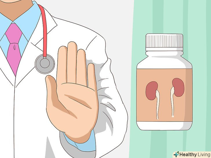 Порадьтеся з лікарем про скасування ліків, які ви приймаєте. деякі лікарські засоби підвищують рівень креатиніну. Небезпечні не тільки препарати, які можуть завдати шкоди ниркам, але і деякі ліки, які призначають при захворюваннях нирок.- Якщо у вас є захворювання нирок, з обережністю приймайте такі препарати як ібупрофен. Вони можуть погіршити захворювання при регулярному прийомі.