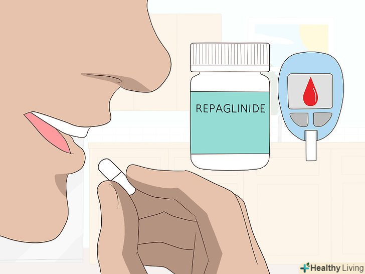 Приймайте гіпоглікемічні лікарські засоби. однією з причин захворювання нирок і, як наслідок, підвищеного рівня креатиніну є діабет. Якщо у вас діабет, важливо підтримувати інсулін на потрібному рівні, щоб не допустити подальшого руйнування нирок. Існують препарати, які допоможуть вам в цьому.- У таких випадках часто призначають репаглінід. Початкова доза становить 0,5 міліграмів, і приймати ліки потрібно до їжі. Максимальна добова доза становить 4 міліграма (до їди). Навіть якщо ви пропустите прийом їжі, потрібно прийняти таблетку.