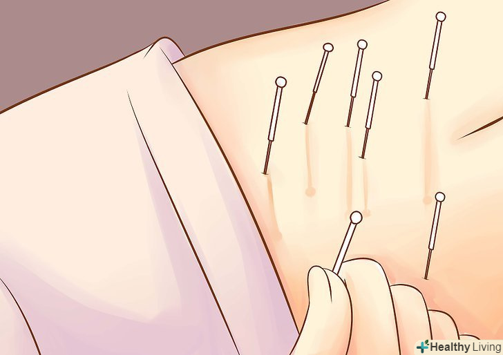 Спробуйте акупунктуру. при цій процедурі в певні ділянки на тілі вставляють дуже тонкі голки, які стимулюють роботу енергетичних центрів або перенаправляють потоки енергії. Акупунктура використовується в лікуванні болю, нудоти, фіброміалгії та інших захворювань. [6] ефективність акупунктури при лікуванні болю в спині висока. [7] [8]- З голковколюванням пов'язаний ряд ризиків, найчастіше-почервоніння і болючість шкіри в місці проколу. При роботі з пацієнтом використовуються стерильні одноразові голки, тому ризик занесення інфекції низький. [9] якщо у вас є порушення згортання крові, якщо ви приймаєте антикоагулянти або у вас є кардіостимулятор, повідомте про це фахівця з голковколювання. [10]