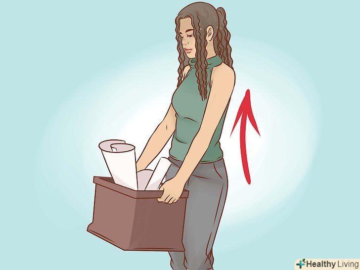 Піднімайте тяжкості правильно. намагайтеся не згинати спину, піднімаючи важкі речі. Якщо вам потрібно підняти щось важке, перш ніж приступити до роботи, спробуйте зрушити предмет, щоб оцінити вагу. Якщо він здається занадто важким, скористайтеся спеціальними пристосуваннями (візком, навантажувачем, ременями, ручками) або попросіть кого-небудь допомогти вам. [34]- Поясні ремені не захищають спину від травм, тому не розраховуйте тільки на ремінь. [35]