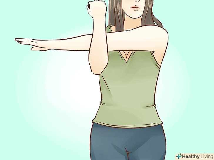 Перед підйомом важкого предмета виконайте вправи на розтяжку. найпростіша вправа — це потягнутися в сторону, як ніби ви намагаєтеся щось дістати. Потягніться однією і другою рукою, повторіть по 5 разів на кожну сторону. Потім повільно нагніться вперед і прогніться назад по 5 разів в кожну сторону. [36]- Постарайтеся добре розтягнути м'язи задньої поверхні стегна. [37] ляжте на спину, підніміть одну ногу вгору, обхопіть її під коліном руками або рушником. Опускайте ногу вниз, поки не відчуєте натяг. Затримайтеся на 10-30 секунд. Повторіть з другої ноги.