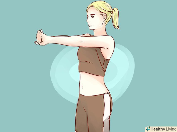 Потягніть м'язи верхньої частини спини. розслабте м'язи. У м'язах можуть виникати спазми, що викликають біль. Щоб цього не відбувалося, намагайтеся розслаблятися, а потім обережно розтягувати м'язи спини. Повторюйте вправи три рази в день. [16] спробуйте робити вправи для м'язи верхньої частини спини: [17]- Сядьте або станьте. Зведіть лопатки якомога сильніше. Затримайтеся на 5-10 секунд і потім розслабтеся.