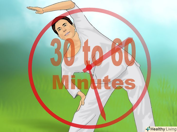 Регулярно займайтеся фізичними вправами. займайтеся від 30 до 60 хвилин в день, чотири-шість разів на тиждень. Доброю підтримкою вашої мотивації до таких занять може стати відвідування спортзалу або тренування разом з друзями. [5]- Пам'ятайте, що краще виконувати хоч якісь вправи, ніж не виконувати взагалі ніяких. Подумайте про деяку зміну своєї поведінки, здатному поліпшити стан вашої серцево-судинної системи і посилити витривалість. Наприклад, виберіть місце паркування подалі від своєї роботи або ж виконуйте завдання по роботі, пересуваючись пішки, коли це тільки можливо, або піднімайтеся по сходах на поверх замість ліфта.