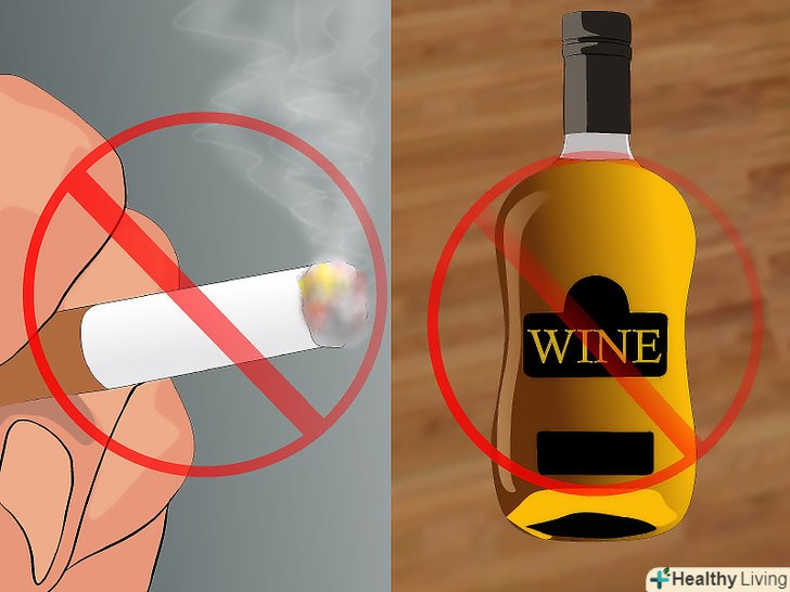 Утримайтеся від алкоголю і тютюну. у деяких країнах куріння призводить щорічно до 440 000 смертей, не рахуючи широкого розмаїття хронічних захворювань, що вимагають дорогого лікування. Зловживання алкоголем викликає захворювання печінки і збільшує ризик розвитку раку. Обмежте споживання алкоголю до двох порцій на день, якщо ви чоловік, і однієї порції, якщо ви жінка. [7]