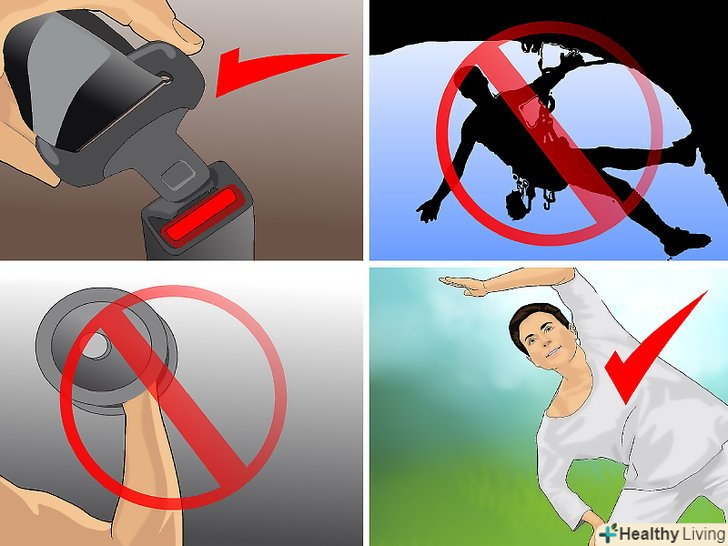 Зменшіть ризик отримання травм. ясна річ, що ви не зможете запобігти всі пошкодження, але постарайтеся хоча б зробити деякі досить прості заходи, щоб знизити ризик найбільш поширених.- Завжди користуйтеся ременем безпеки в автомобілі, а катаючись на велосипеді, роликових ковзанах або займаючись контактними видами спорту, надягайте шолом.