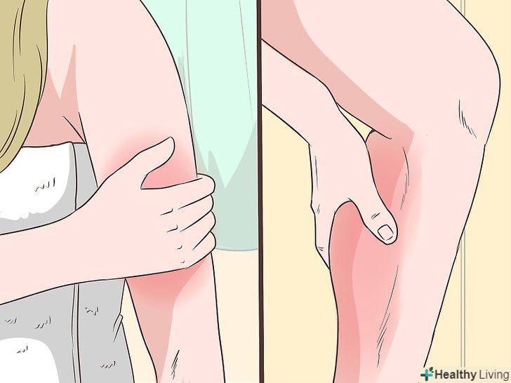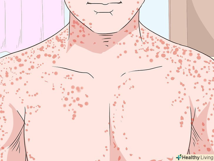Огляньте свою шкіру на предмет наявності на ній дрібних червоних плям (петехій). вони досить помітні на тілі і не схожі на червоні плями після тренувань або прищі. Якщо ви помітили круглі маленькі червоні плями на шкірі, яких раніше не було, негайно зверніться до лікаря. Вони більше схожі на висип, ніж на згустки крові. [11] в основному, вони проявляються не поодинці, а невеликими скупченнями. [12]