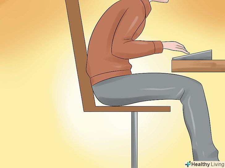 - сидіння : сидіть на стільцях з прямою спинкою, які забезпечують хорошу підтримку вашій спині. Щоб Ваша спина не прогиналася в попереку, підтягніть під себе сідниці. Вкрай важливо мати хорошу опору для спини; використовуйте м'яку подушечку для забезпечення підтримки попереку.