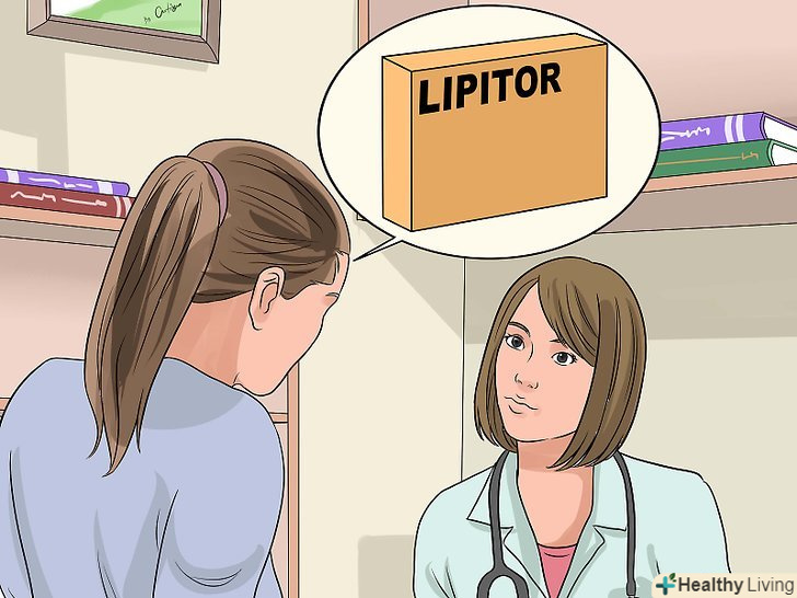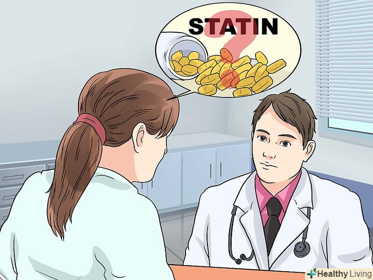 Поговоріть зі своїм лікарем про статини. ці препарати часто призначають для зниження холестерину. Вони не дають печінки виробляти холестерин, через що вона змушена "вимивати" його з крові. Ці препарати також дозволяють боротися з утвореннями всередині артерій. Після початку прийому вам, можливо, доведеться приймати їх все життя, оскільки якщо зупинити прийом, рівень холестерину почне рости. До побічних ефектів відносяться головні болі, неприємні відчуття в м'язах, проблеми з травленням. Найчастіше призначають такі препарати: [19] [20]- Аторвастатин