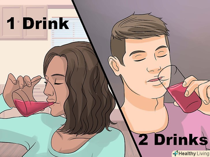 Знизьте споживання алкоголю. в алкоголі багато калорій і мало поживних речовин. Це означає, що неконтрольоване споживання алкоголю підвищує ризик ожиріння. Нижче ми наводимо рекомендовані дози: [8]- Один келих або чарка в день, якщо ви жінка, і два келихи або чарки, якщо ви чоловік.