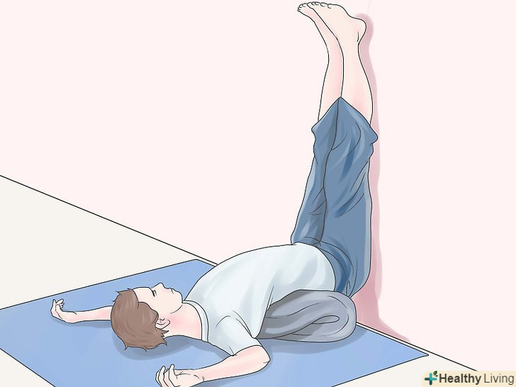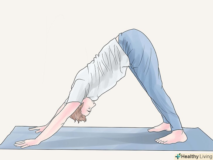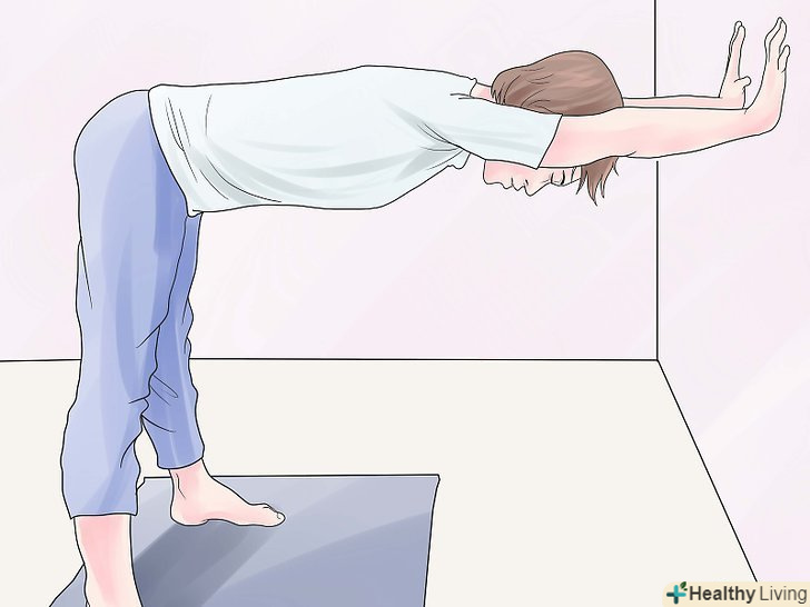 Встаньте навпроти стіни. потягніться вперед і зробіть упор долонями в стіну. Як можна сильніше підтягніть пупок. Починайте відступати назад, все так же торкаючись стіни.- Поверніться назад у зручне положення. В результаті, ви будете тягнутися прямо вперед, з долонями притиснутими до стіни. Ваше тіло з прямими ногами повинно утворювати форму літери "L". Затримайтеся в такому положенні від 30 секунд до хвилини. Не забувайте глибоко дихати весь час, поки ви утримуєте цю позицію.