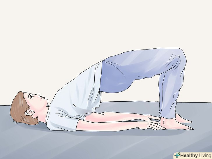 Ляжте на спину. підніміть стегна і розташуйте блок для йоги або згорнутий килимок прямо під ними. Ідіть ногами у напрямку до блоку.